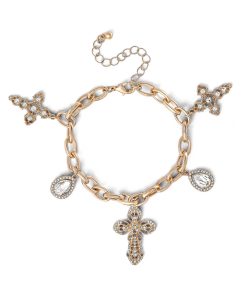 Jessica Simpson Accessories Jewelry Cross & Clear Glass Stone Charm Bracelet