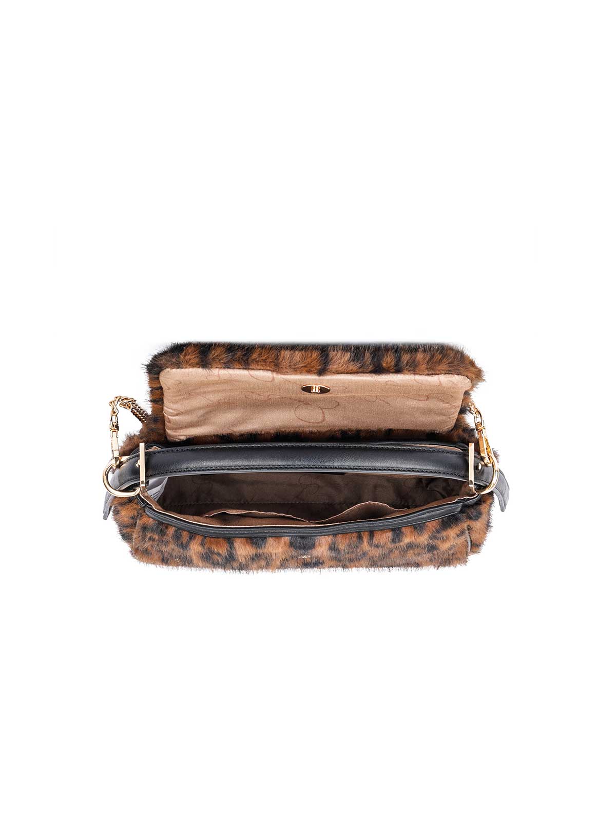 This handbag is a little rectangle of sass—flap front, sturdy top handle, and swishy chain straps you can clip on or off. Its snakeskin-style texture says “I’m wild,” while the shiny metal hardware says “but I’ve got class.”