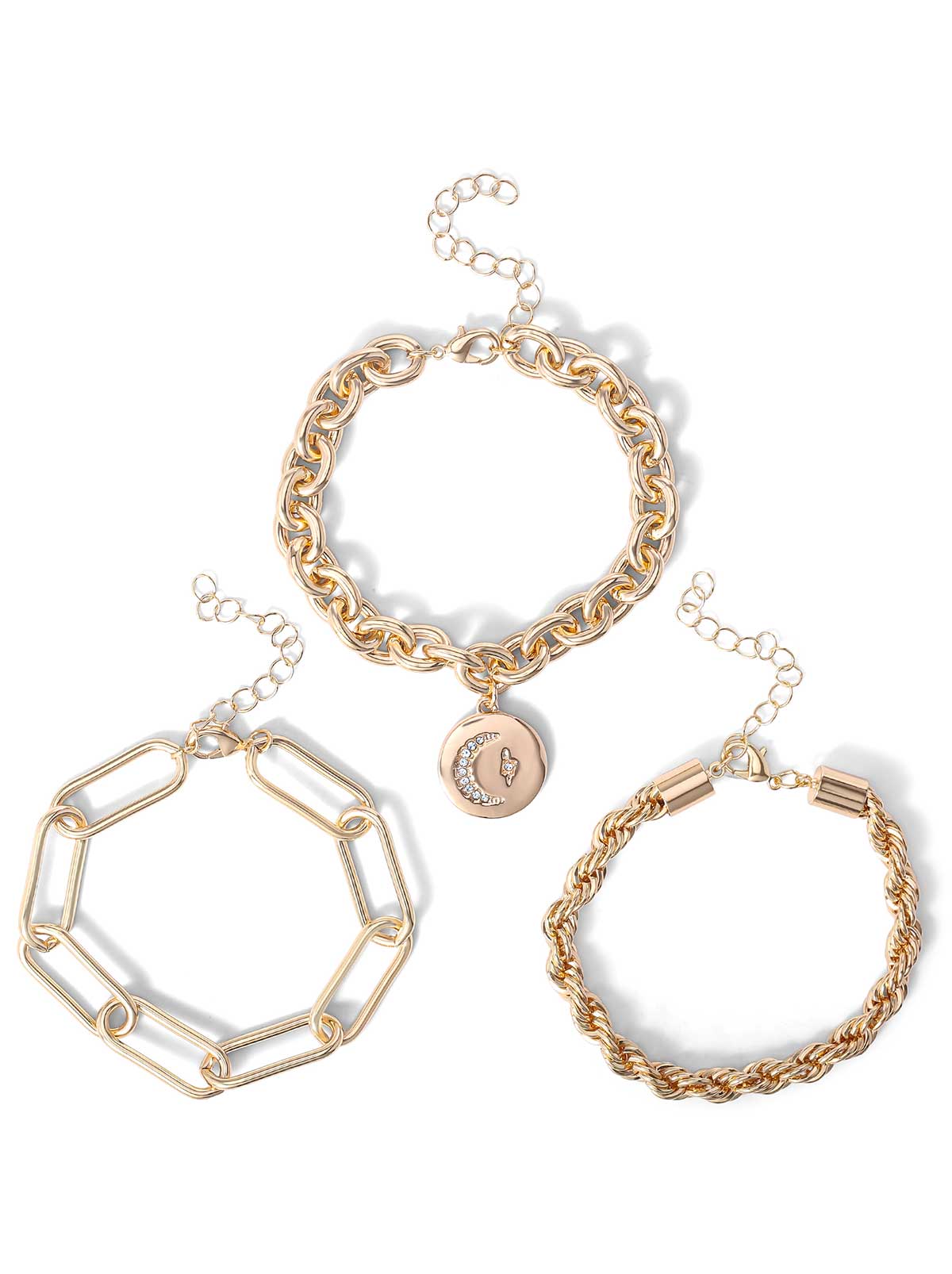 A set of three stylish bracelets that can be worn together for a layered effect or separately for versatile style.