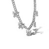 This necklace features a chunky silver chain adorned with multiple butterfly charms, each embellished with sparkling crystals. The design blends edgy and feminine elements, making it a standout piece perfect for adding playful glam to any outfit