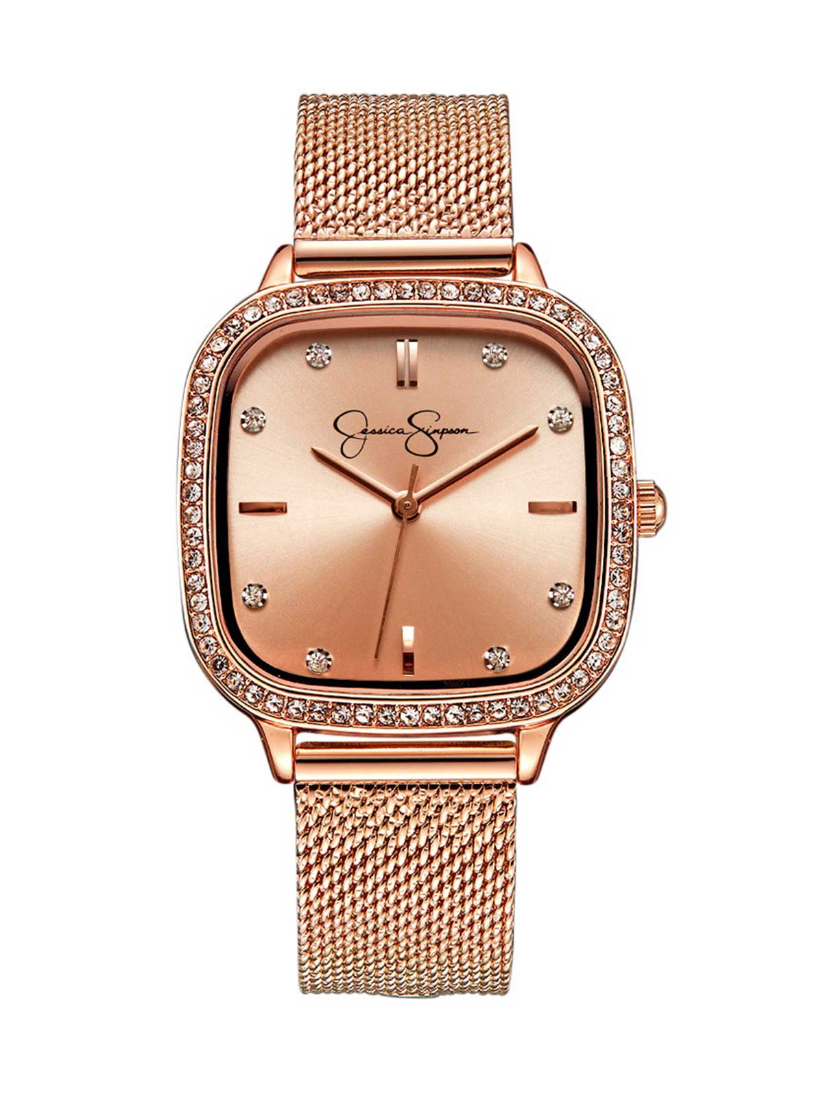 Jessica Simpson Accessories Jewelry Crystal Bezel Mesh Watch In Rose Gold Tone quantity