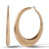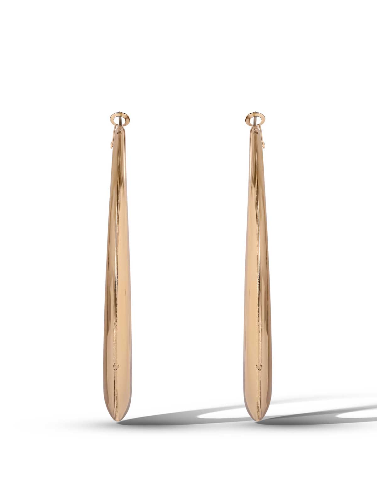 These gold-toned hoop earrings feature a sleek, tapered teardrop shape with a high-polish finish. Bold yet elegant, they offer a modern twist on the classic hoop—perfect for everyday glam or elevating a night-out look.