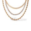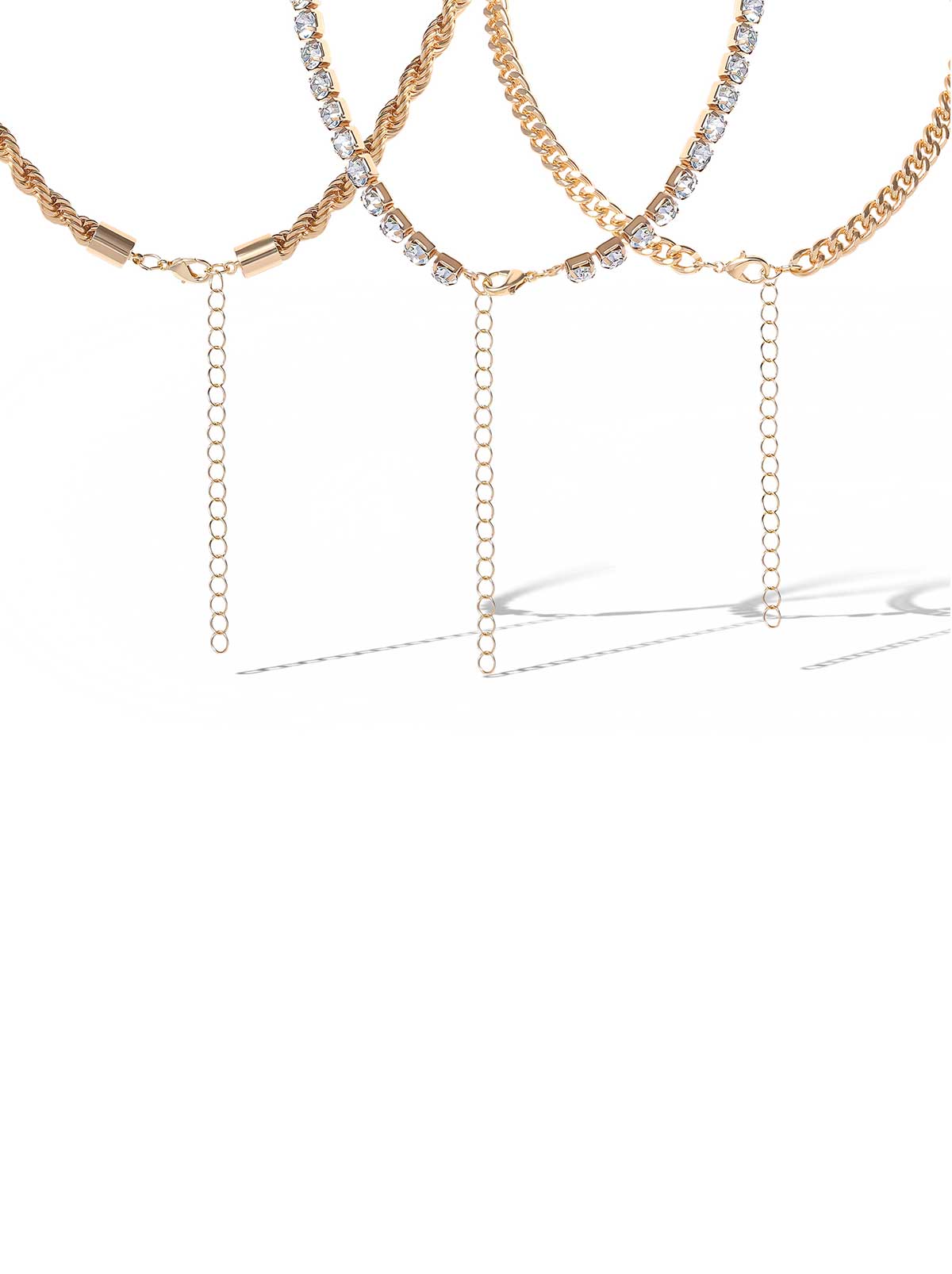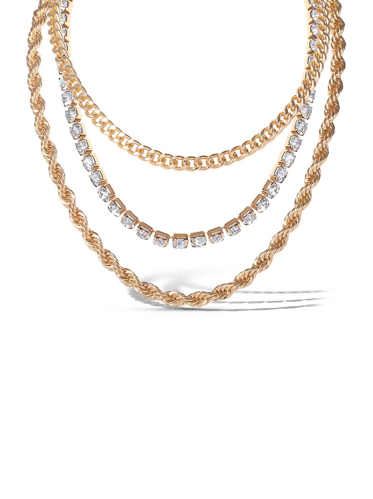 A trio of bold and twisted chain necklaces in mixed gold and silver tones for maximum versatility