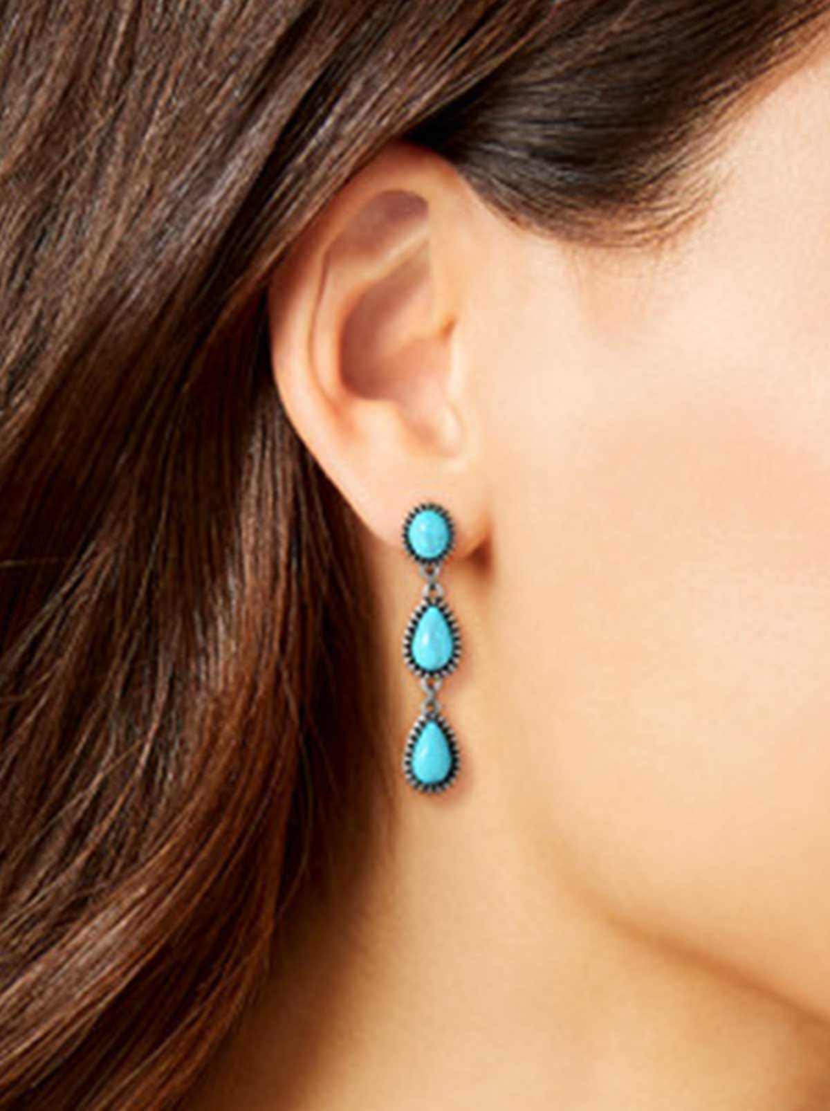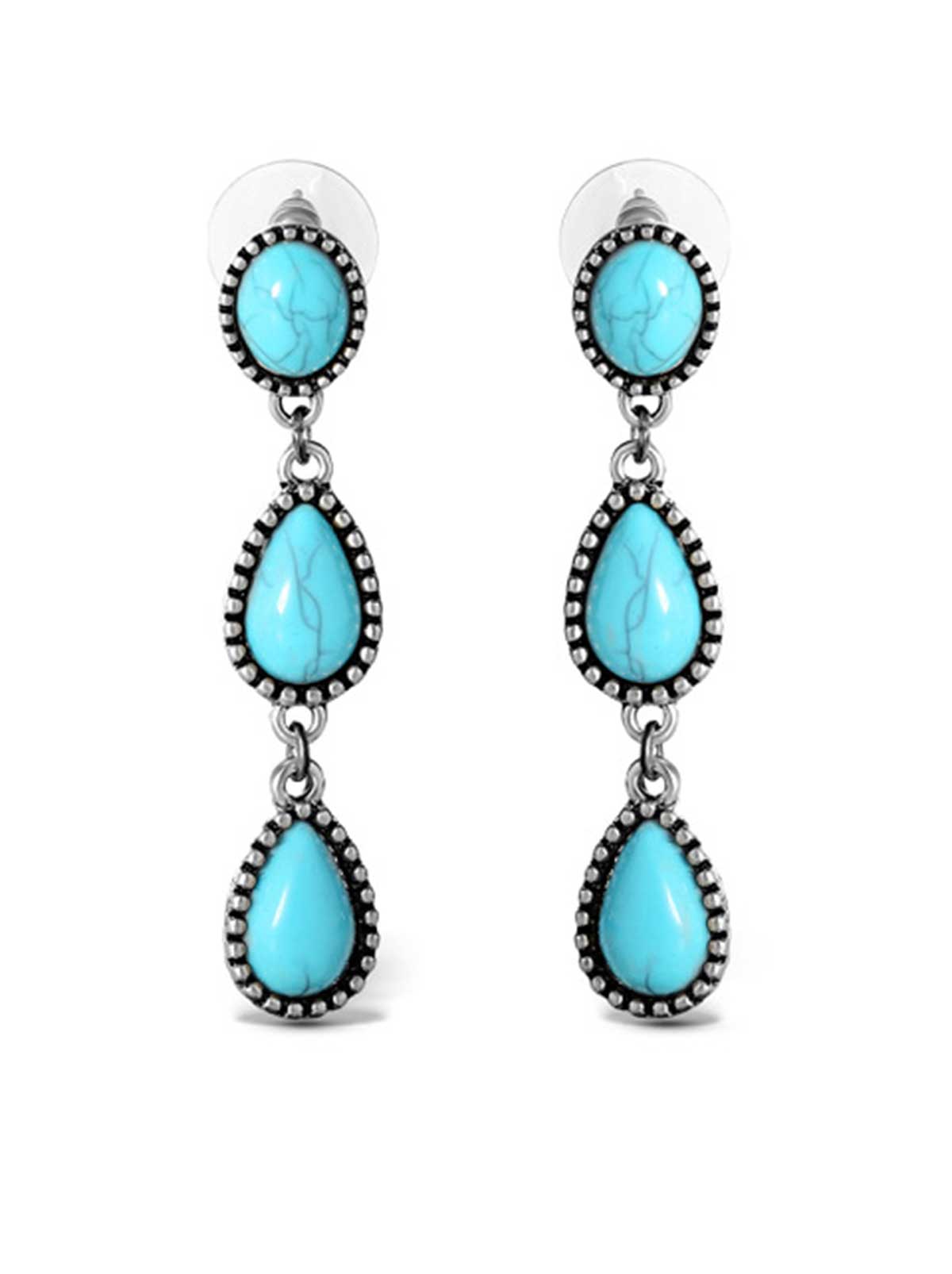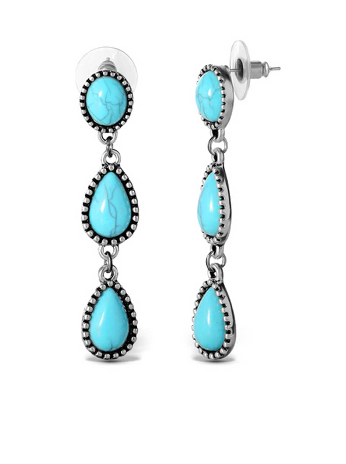 Add a touch of color to your look with our Three Stone Drop Earrings in silver-tone metal