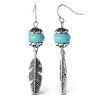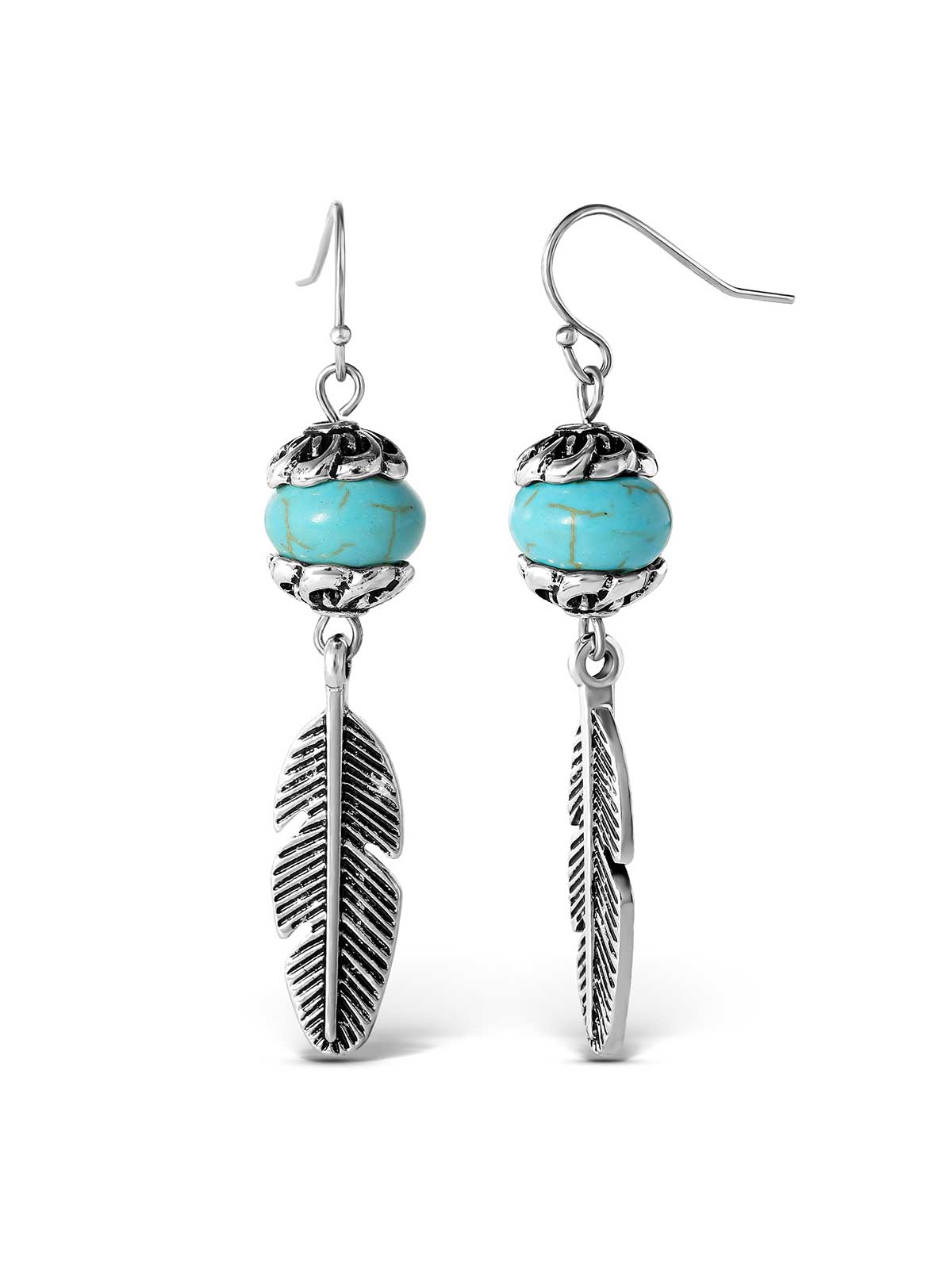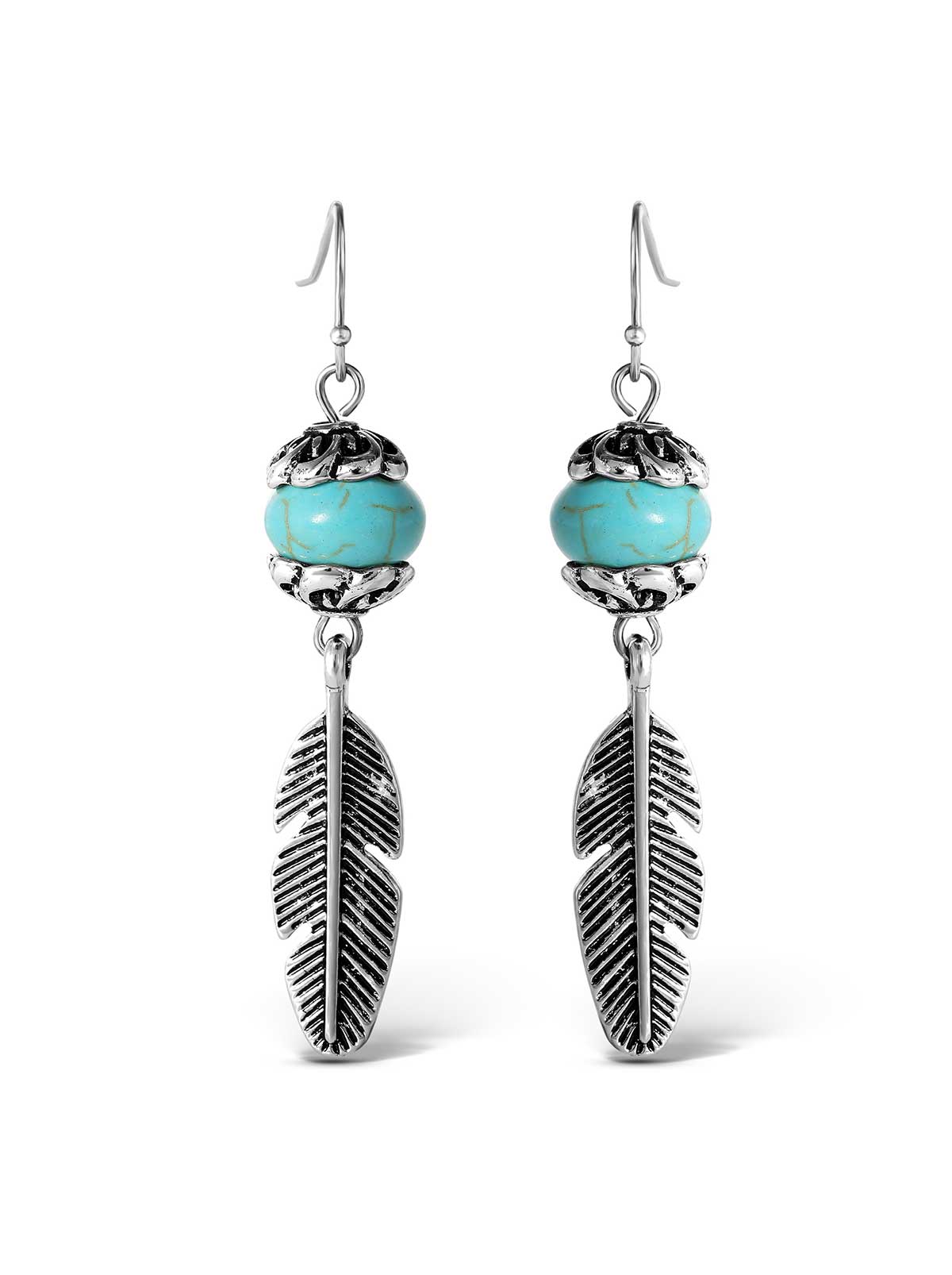 Enhance your style with our Turquoise Bead Feather Drop Earrings in silver-tone metal