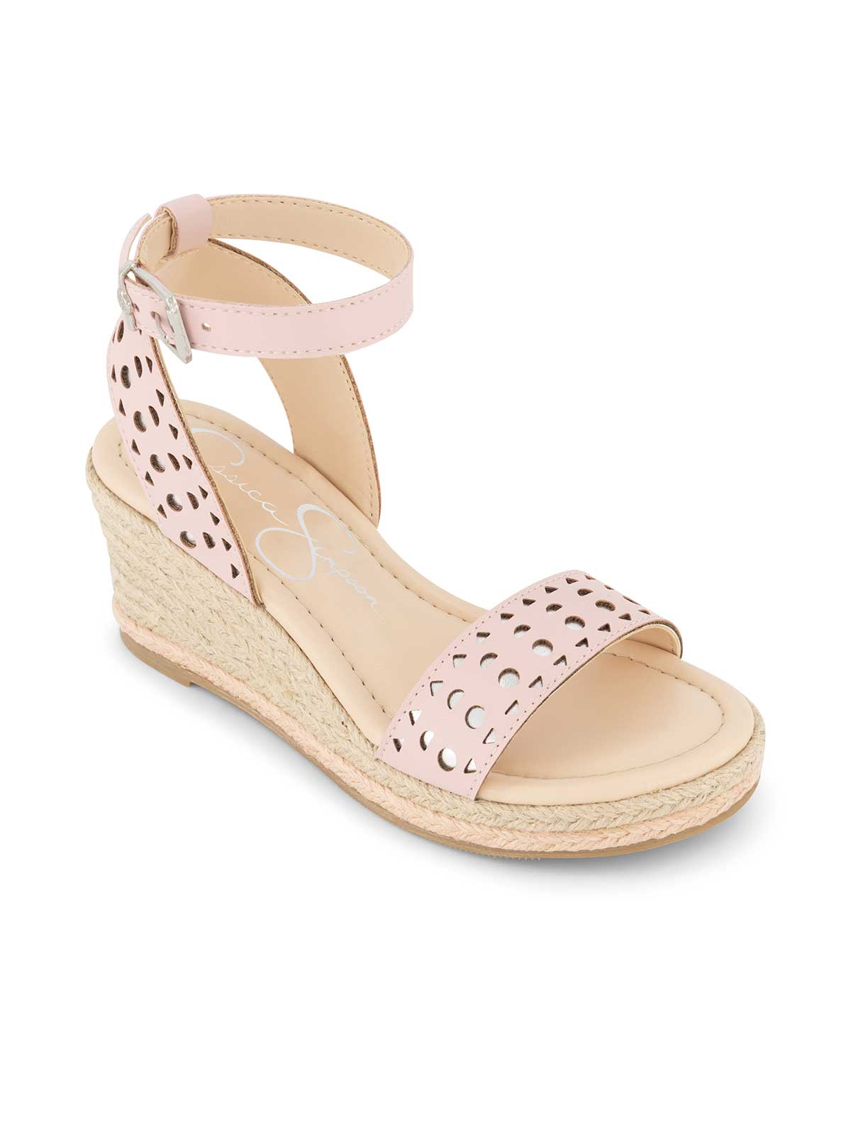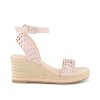 Open-toe casual dress wedge with lazer cut detailed on the upper with metallic underlay
