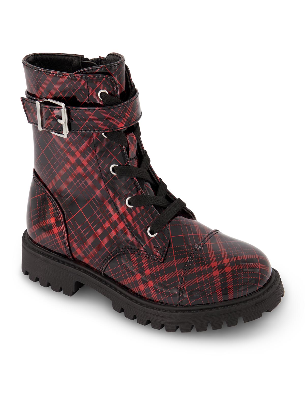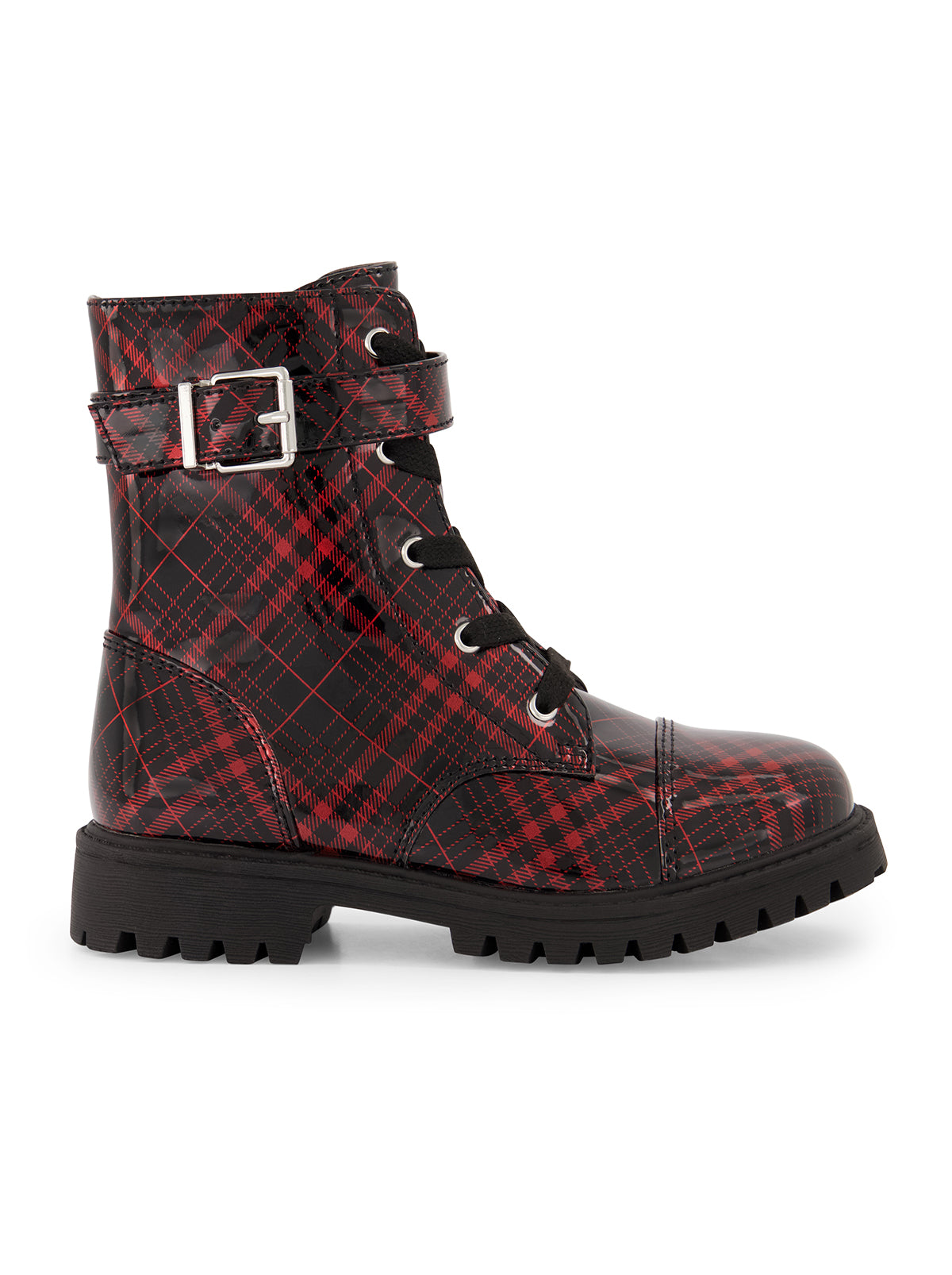 Girls’ Daria Moto Boot with Buckle in Black Plaid