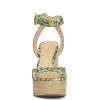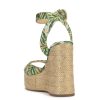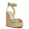 Step into effortless summer style with these elegant wedge sandals. Featuring a smooth leather upper and an adjustable ankle strap with a gold braided buckle, these shoes provide both comfort and sophistication. The woven raffia-style platform and wedge heel add a touch of natural charm, making them perfect for casual outings or dressier occasions. With their timeless design and versatile look, these wedges are a must-have addition to your warm-weather wardrobe.