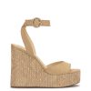 Step into effortless summer style with these elegant wedge sandals. Featuring a smooth leather upper and an adjustable ankle strap with a gold braided buckle, these shoes provide both comfort and sophistication. The woven raffia-style platform and wedge heel add a touch of natural charm, making them perfect for casual outings or dressier occasions. With their timeless design and versatile look, these wedges are a must-have addition to your warm-weather wardrobe.