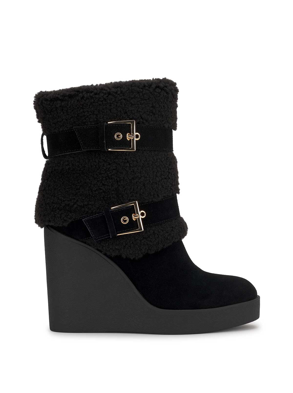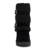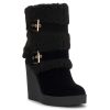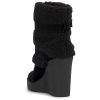 Cozy just got a runway remix! This wedge boot brings major après-ski vibes with its fuzzy cuff, plaid print, and chunky buckles. Wrapped in softness and lifted on a bold wedge, it’s like your favorite blanket—but make it fashion. Snuggle up, step out, and let the compliments roll in.